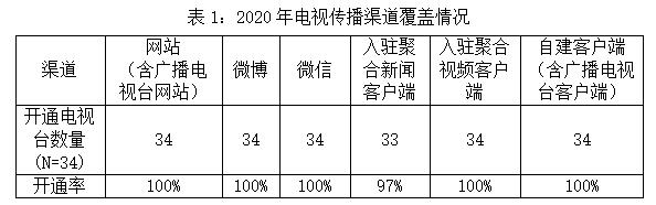 北京廣播電視臺的北京時間網2020年新聞報道數量為18.7萬條,首次超過中央廣播電視總臺的央視網,排名第一位。中央廣播電視總臺央視網全年原創新聞7.2萬條,被近4000家媒體轉載,在原創方面居首位。省級電視臺網站中,四川廣播電視臺、廣東廣播電視臺及江西廣播電視臺網站原創新聞數量均超過5萬條,居省級電視臺前三位。
