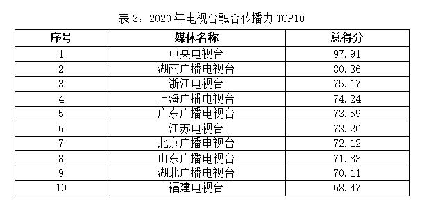 數據顯示、中央廣播電視總臺融合傳播力遙遙領先,湖南廣播電視臺、浙江電視臺、上海廣播電視臺及廣東廣播電視臺在省級電視臺中表現優異。