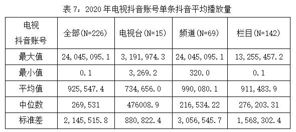 但所有電視抖音賬號單條抖音平均播放量為92.6萬次,比2019年的118萬次降低21.5%。中央廣播電視總臺央視新聞頻道單條抖音平均播放量最高,為2404.5萬次。單條抖音平均播放量超過1000萬的還有中央廣播電視總臺《新聞聯播》欄目。河南廣播電視臺民生頻道抖音賬號單條抖音平均播放量為755萬次,在地方電視臺及下屬頻道、欄目中排名最高。