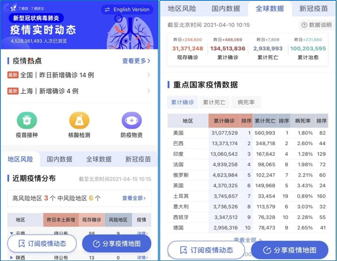 2020內容科技應用典型案例:丁香園·丁香醫生全球新型冠狀病毒肺炎疫情實時動態地圖
