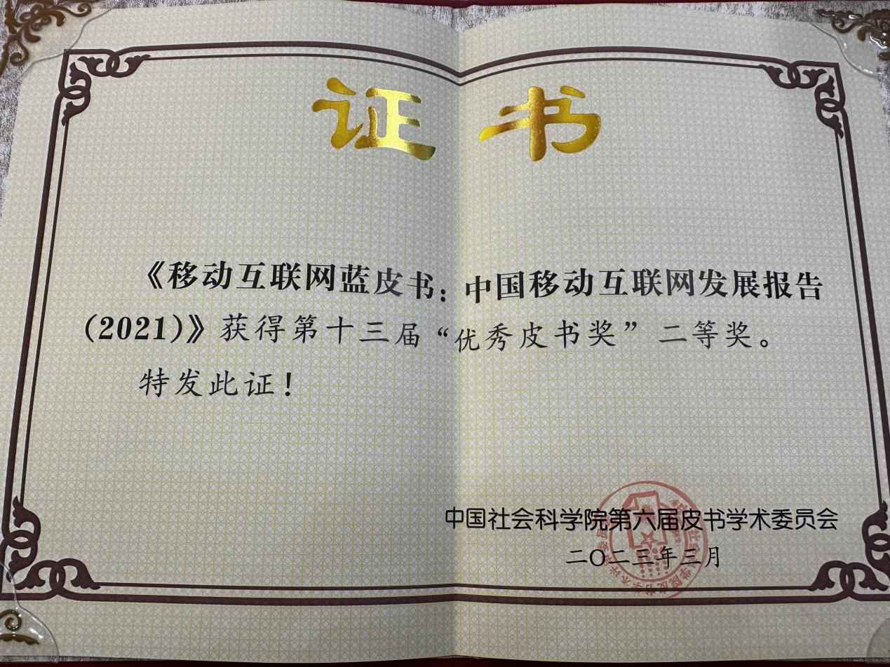 《中國移動互聯網發展報告(2021)》獲頒第十三屆“優秀皮書獎”
