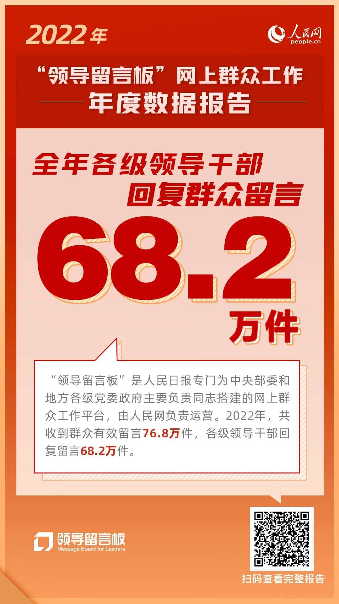 “領導留言板”2022年度數據報告及圖解以真實數據為支撐,全方位展現了人民網“領導留言板”的群眾留言情況。其中,數據報告圖解以精煉的數據,通過可視化的方式展現了2022年度各地黨政領導和辦理單位的留言辦理情況。系列報道信息全面、數據詳實、形式多樣,以多渠道、多角度、多方位闡述了“領導留言板”2022年全年工作成果,持續發揮“領導留言板”上連黨心、下接民心的作用,進一步擴大了“領導留言板”的影響力。
